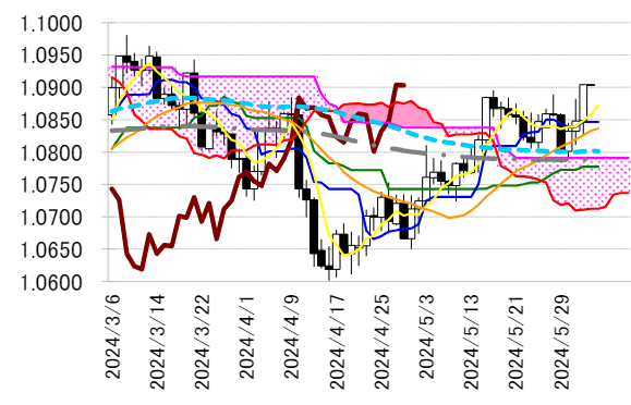 サポート 1 1.0847(日足一目均衡表・転換線)