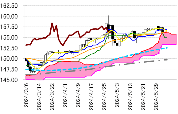 レジスタンス 1 156.83(日足一目均衡表・転換線)