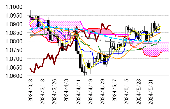 サポート 1 1.0820(日足一目均衡表・基準線)