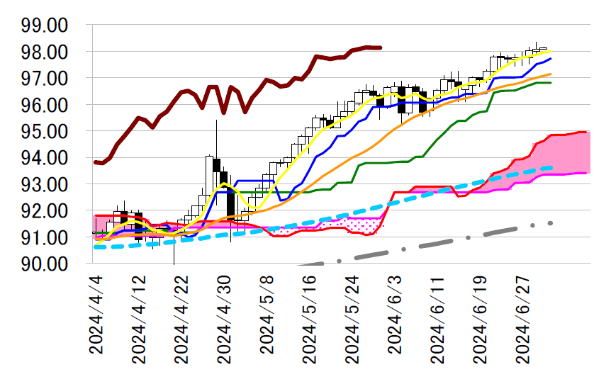 サポート1 97.59(日足一目均衡表・転換線)
