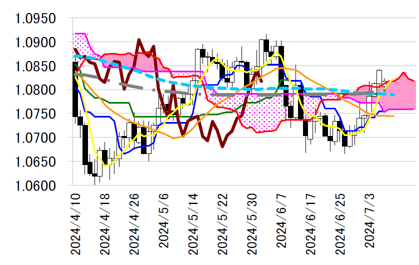 サポート1 1.0791(日足一目均衡表・基準線)