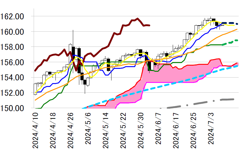 衡表・転換線160.79 円を上回る水準へ戻している。