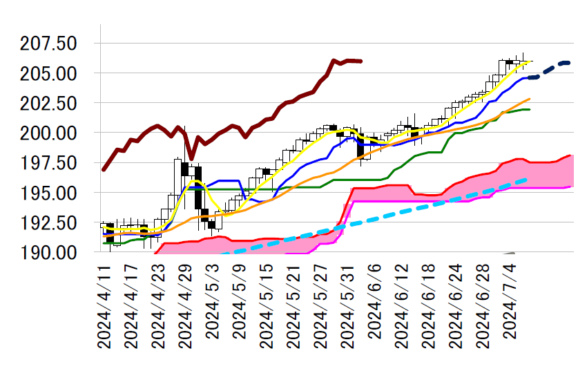 レジスタンス1 206.67(7/8 高値=年初来高値)