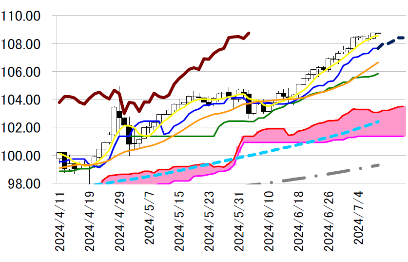 サポート1 108.05(7/5 安値)
