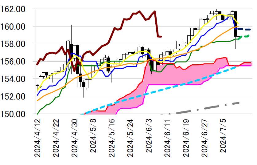 レジスタンス1 159.70(日足一目均衡表・転換線)