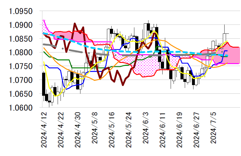目均衡表・雲の上限が本日の1.0836 ドルでピークアウトす