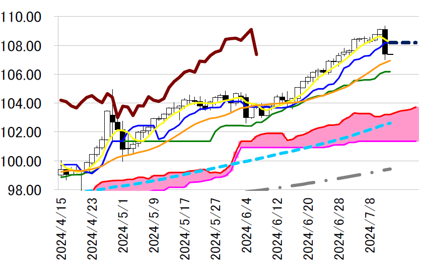 レジスタンス1 108.19(日足一目均衡表・転換線)