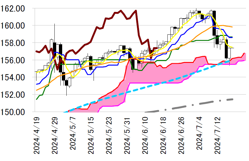 サポート1 156.17(日足一目均衡表・雲の上限)