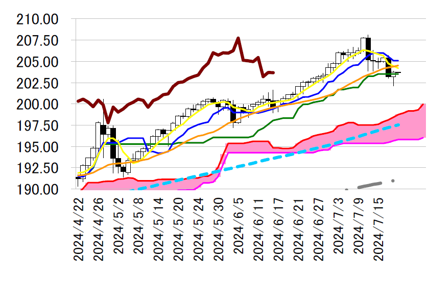 レジスタンス1 205.11(日足一目均衡表・転換線)