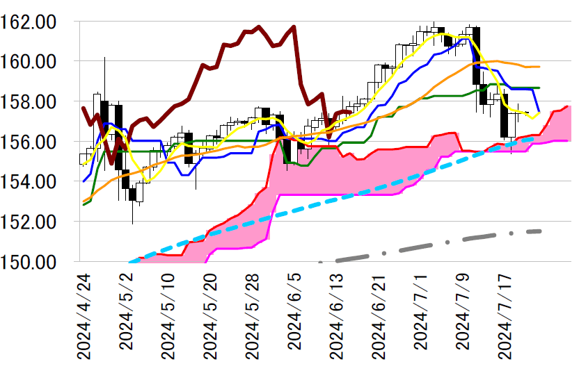 サポート1 156.23(日足一目均衡表・雲の上限)