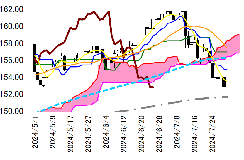 レジスタンス2 154.90(日足一目均衡表・転換線)