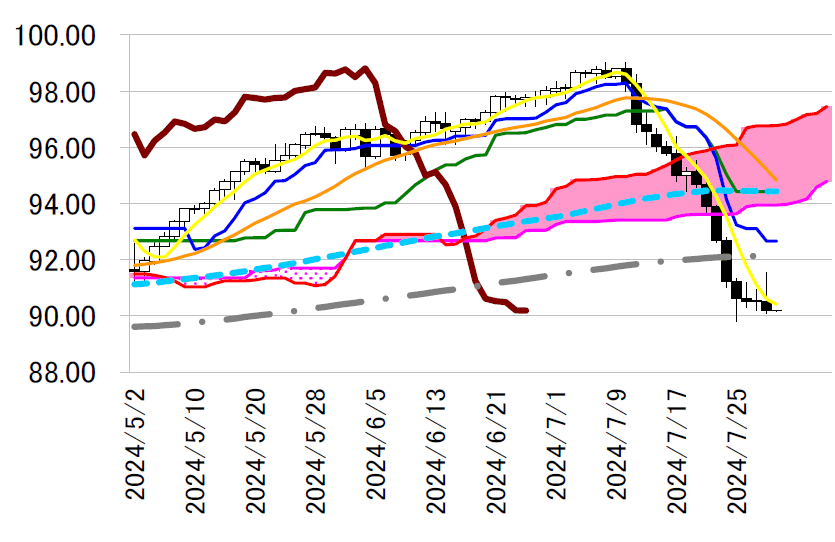 レジスタンス1 91.53(7/30 高値)