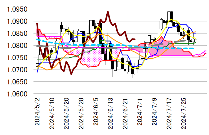 本日は転換線1.0851 ドルを念頭に置き、7 月29 日の高値