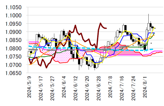 均衡表・転換線1.0893 ドルといった水準の下抜けには至っ