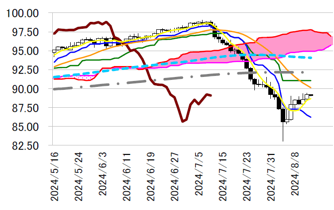 りシグナルが点灯中で下方向への動きが警戒される。8/2 高