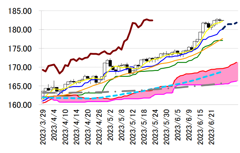 み合いだった。本日 182.24 円前後へ切り上がった 5 日移動