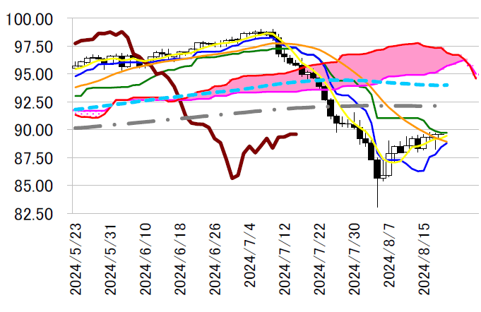 サポート1 88.45(日足一目均衡表・転換線)