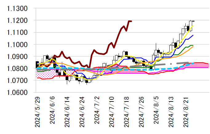 また、欧米の投資家は円だけではなく、他のアジア通貨も軒並み買っていることもドル円の上値を抑え るだろう。7月31日から先週までの間で、円は約3.9%対ドルで強含んだが、インドネシアルピアとマレ ーシアリンギは5%弱、タイバーツは4%程度、対ドルで上昇している。他のフィリピンペソ、韓国ウォ ン、台湾ドル、シンガポールドルなども対ドルで買われていることをみても分かるように、欧米の投資家 は7月末を境にポートフォリオを完全に転換している。本邦投資家よりも中銀の動向に機敏に反応するこ とができる欧米投資家が、この動きを継続することが考えられ本邦勢は乗り遅れている状況だ。米連邦準 備理事会(FRB)の金融政策が転換点を迎えただけではなく、ドル相場も7月末時点で転換点を迎えてい たことに気が付かなくてはならないのだろう。