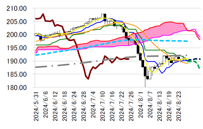 目・基準線に引っ張られ気味な感もある。同線は190.65 円