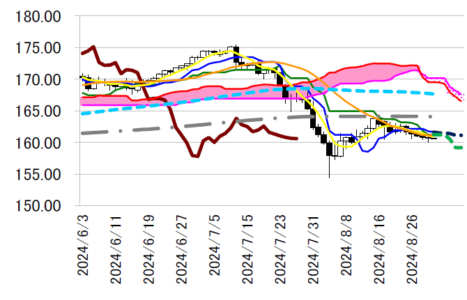 サポート1 160.03(8/29 安値)