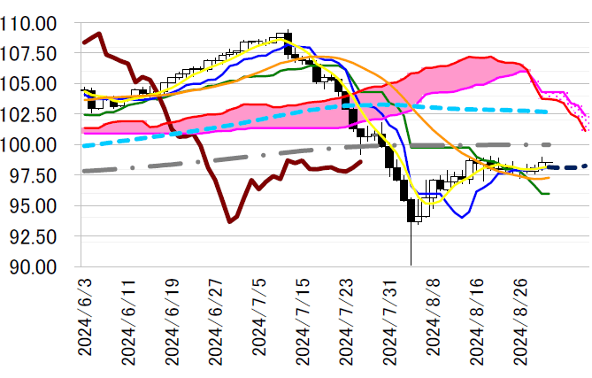 サポート1 97.85(8/29 安値)