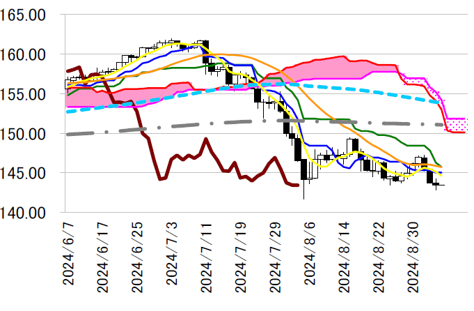 レジスタンス2 145.03(日足一目均衡表・転換線)