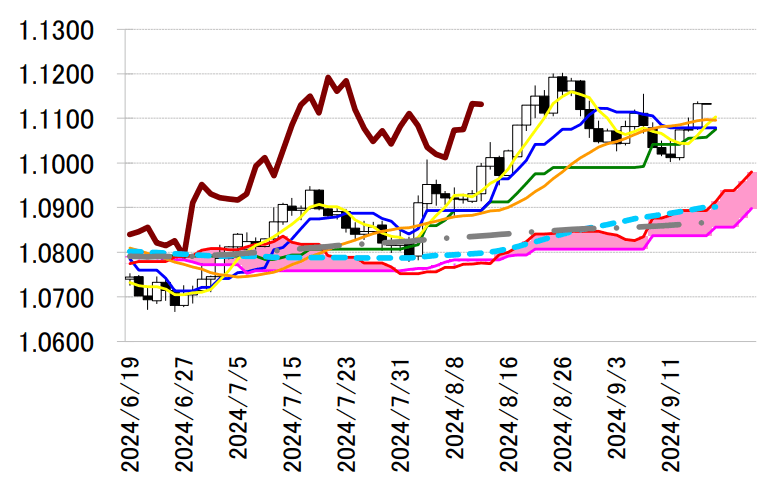 サポート 1 1.1079(日足一目均衡表・転換線)