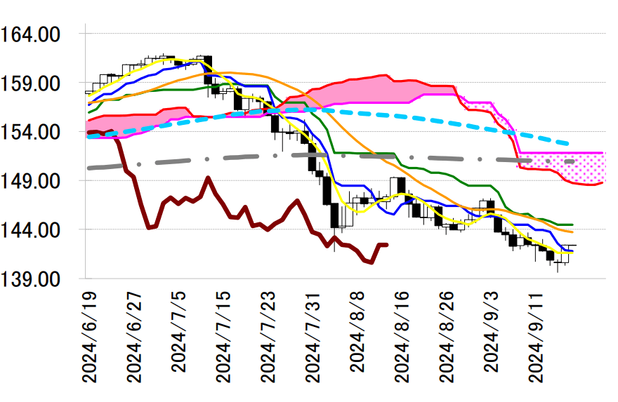 昨日のドル円は短期的な攻防の分岐点である日足一目均衡表・転換線141.91円を上抜けて142円台半 ばまで上昇した。予想を上回る米8月小売売上高を受けて、FOMCでの0.50%の利下げ確率がやや低下し たことが影響した。