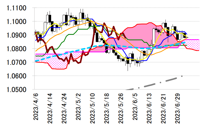 サポート 1 1.0824(日足一目均衡表・基準線)