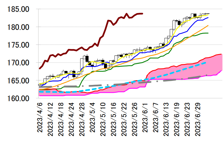 本日は、182 円台で上向きの転換線を支持に押し目買いス