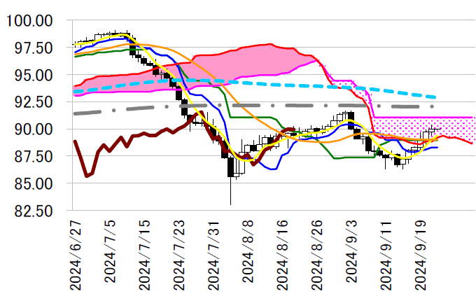 サポート1 89.20(日足一目均衡表・雲の下限)