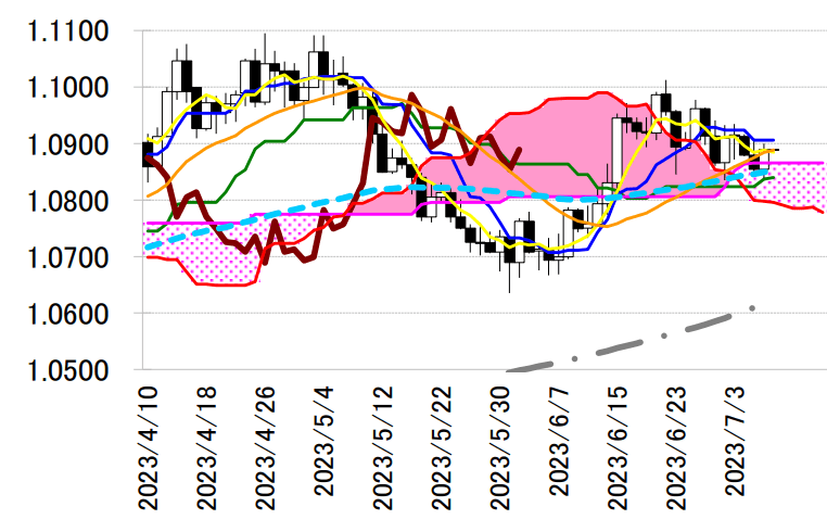 本日も転換線 1.0906 ドルや雲の上限 1.0865 ドルを念頭に