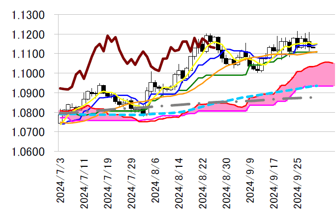 本日は転換線1.1142 ドルを念頭に置き、9 月25 日の高値
