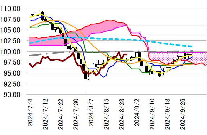 サポート1 98.36(日足一目均衡表・転換線)