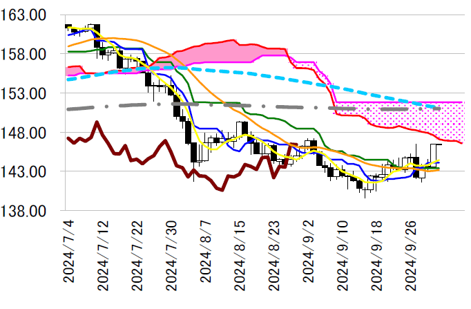 レジスタンス1 147.11(日足一目均衡表・雲の下限)