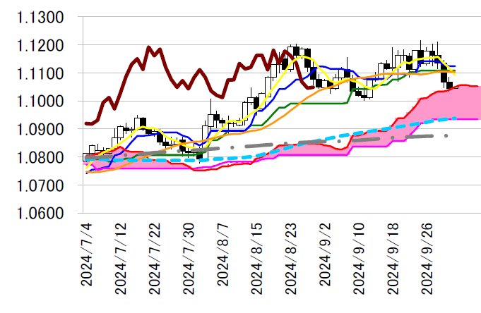 サポート1 1.0934(日足一目均衡表・雲の下限)