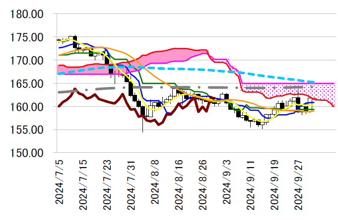 サポート1 160.80(日足一目均衡表・転換線)