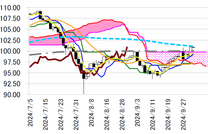 サポート1 99.76(日足一目均衡表・雲の上限)