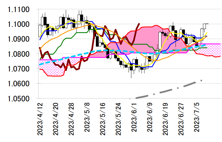 を若干上回る水準にとどまっており、6 月 22 日高値 1.1012