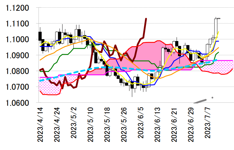 向の流れは断たれることなく上伸した。一時 1.1140 ドルと、