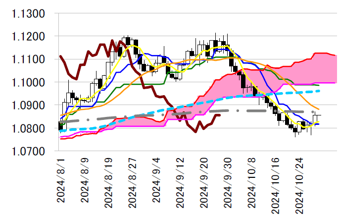 本日は転換線1.0817 ドルや200 日移動平均線1.0869 ドル