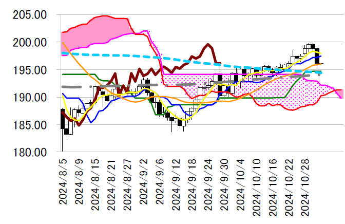 グナルが点灯中。しかし、抱き線で反落して、10/31 時点の