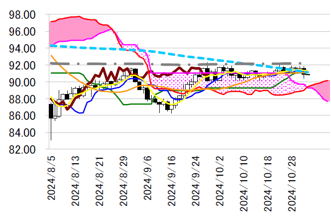 レジスタンス1 91.24(日足一目均衡表・転換線)