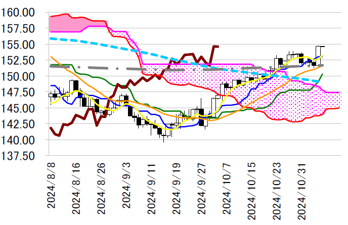 上値めどと見られた10 月28 日高値153.88 円をしっかり