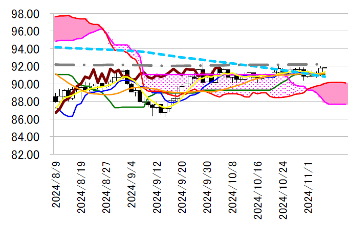 その上には9 月27 日高値92.29 円もあり、同水準も上回る