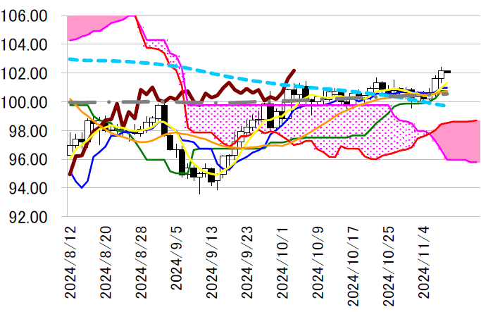 ナルが点灯中。転換線の上で強含み、7 月以来となる102 円