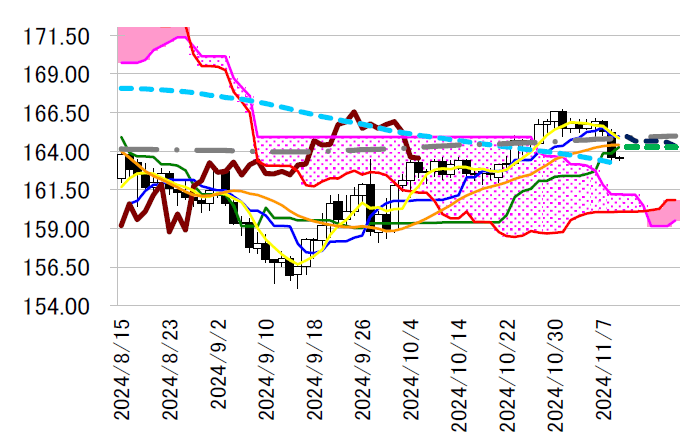 164.27 円でしばらく横ばいが続く見込みの一目均衡表・転換