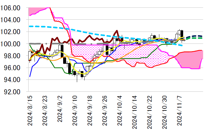 基準線100.75 円や転換線100.97 円を追うような戻りを期待