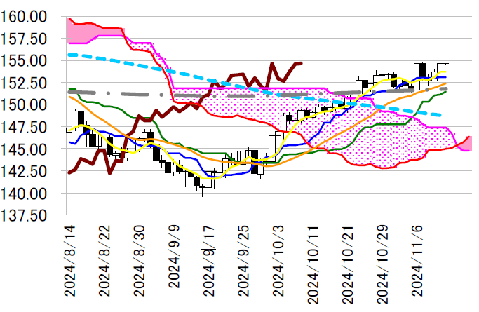 ドル円が155円台に乗せた場合は、トランプ次期米大統領のドル安志向と整合的な本邦通貨当局による ドル売り・円買い介入の可能性には警戒しておきたい。