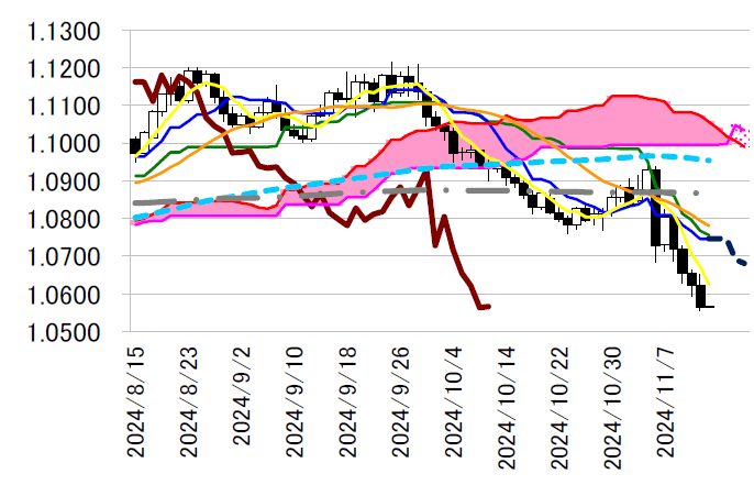 均衡表・転換線1.0747 ドルは来週前半にも1.07 ドル割れへ